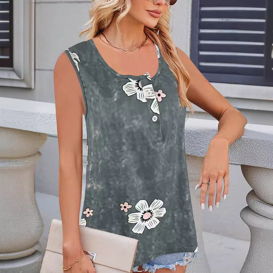 Print Vest Casual Fashion Crew Neck Sleeveless Top