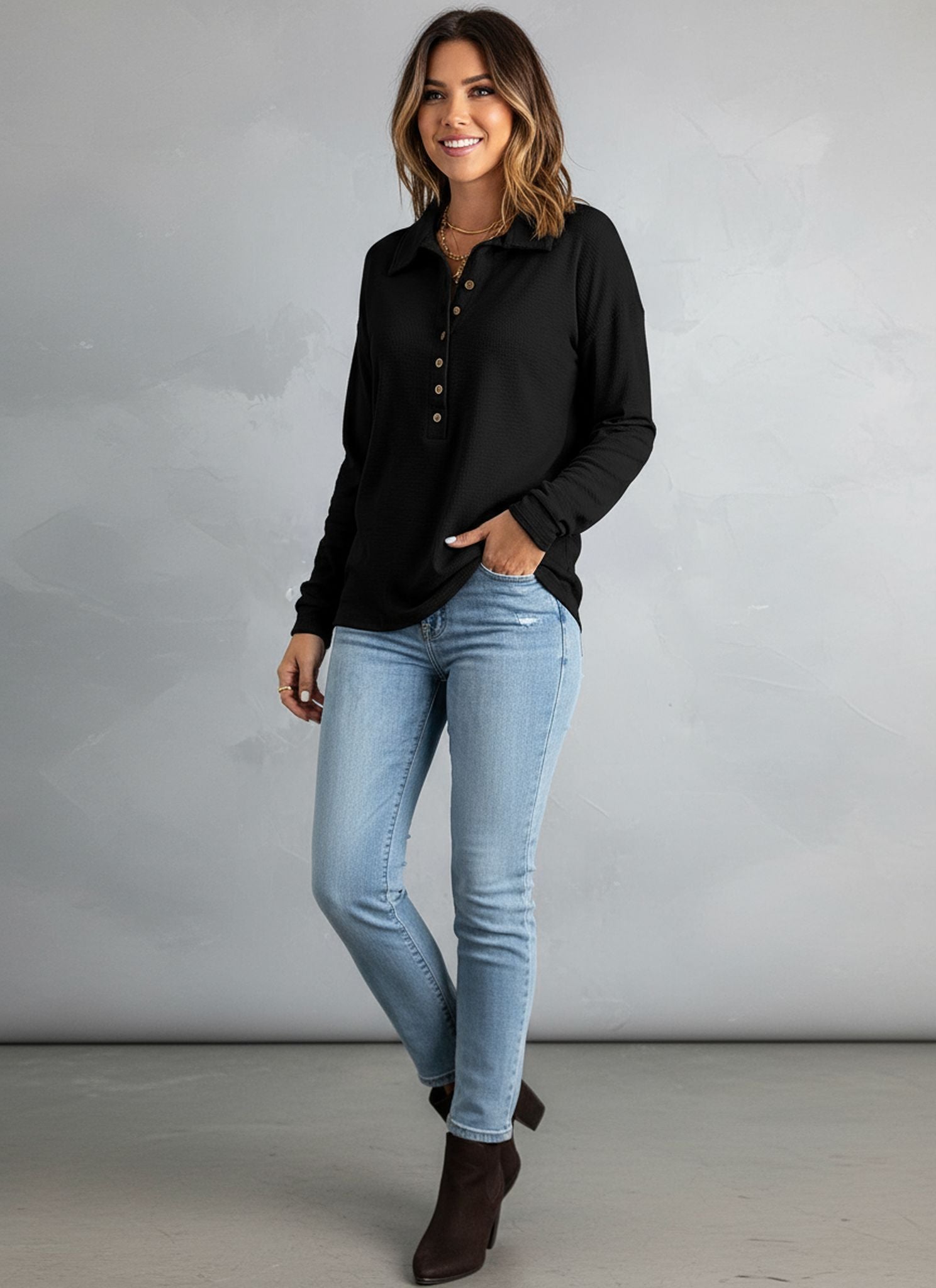 Single-Breasted Lapel Long-Sleeved Loose Casual Bottoming Top Autumn And Winter New