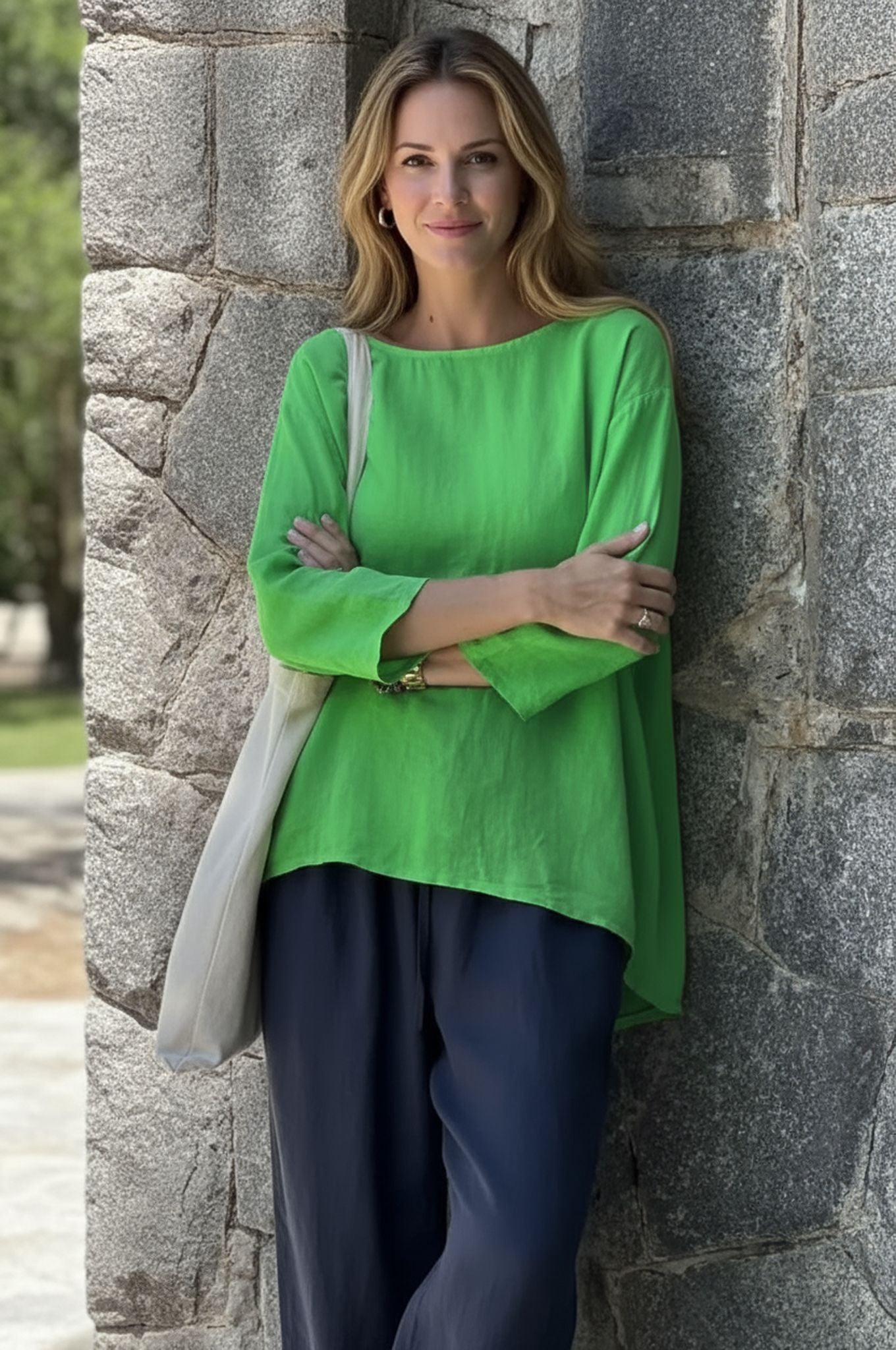 Sleeve Crew Neck Cotton And Linen Loose Shirt Top