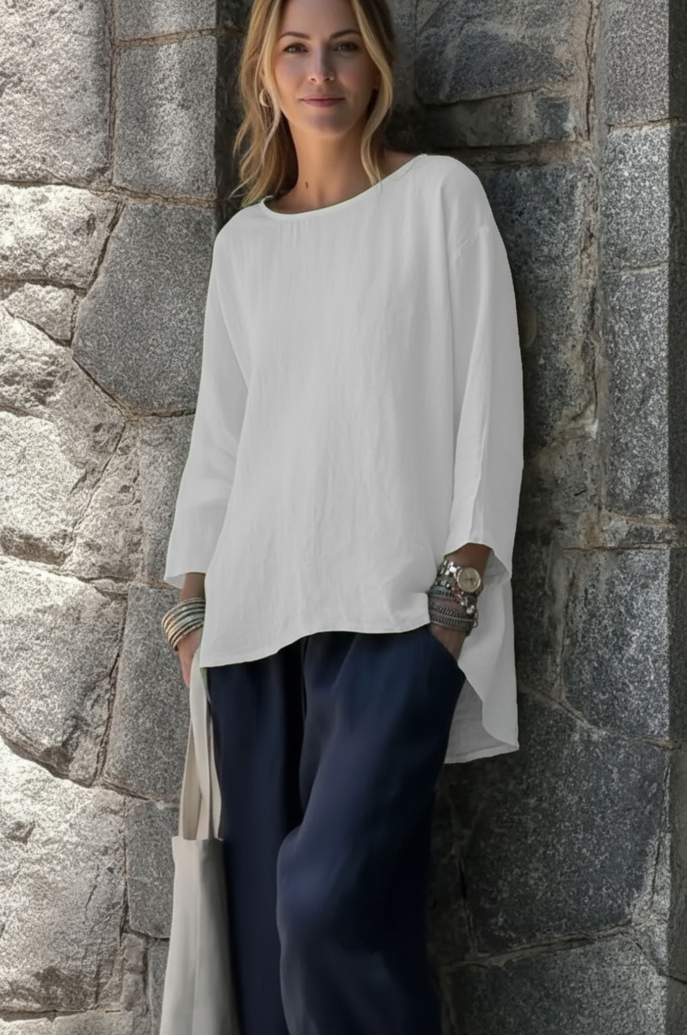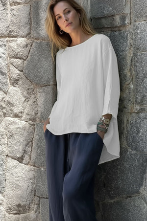 Sleeve Crew Neck Cotton And Linen Loose Shirt Top
