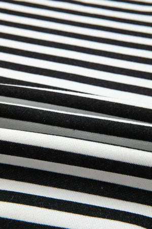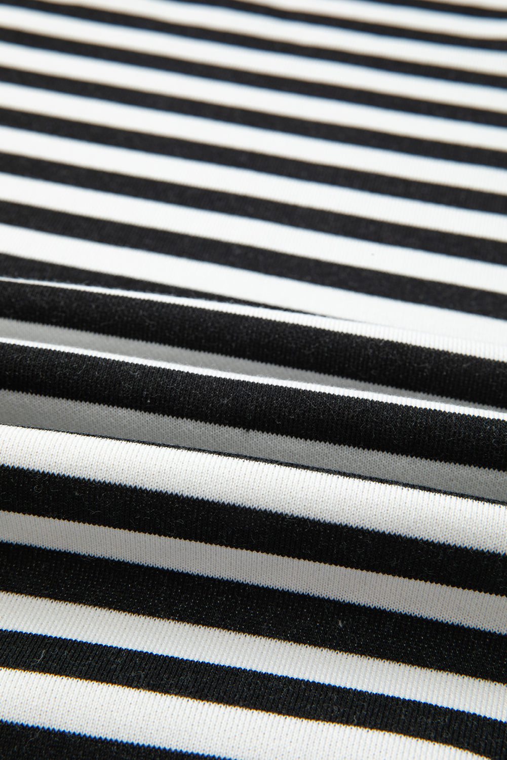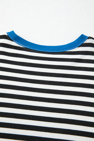 White Stripe Striped Contrast Ribbed Trim Crossed Stitch Drop Shoulder Sweatshirt