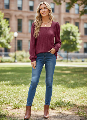 Winter New Women'S Pit Strip Square Neck Fashion Casual Long-Sleeved Top