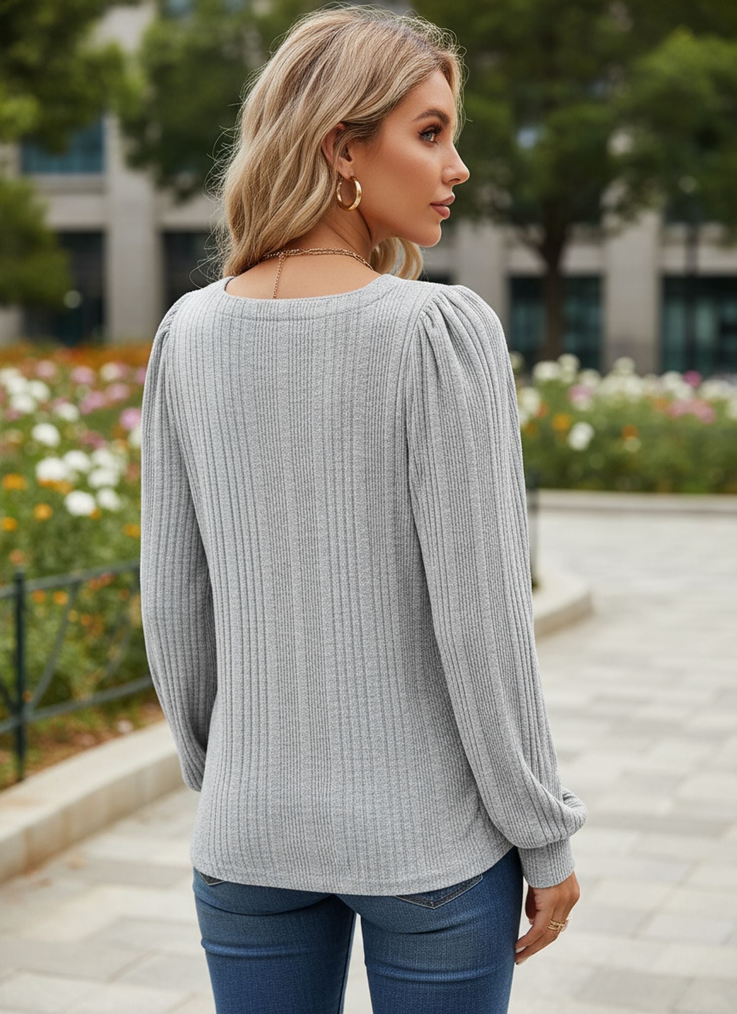 Winter New Women'S Pit Strip Square Neck Fashion Casual Long-Sleeved Top