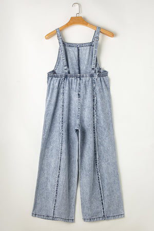 Beau Blue Light Wash Frayed Exposed Seam Wide Leg Denim Overall