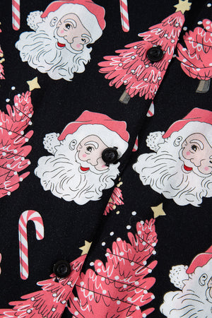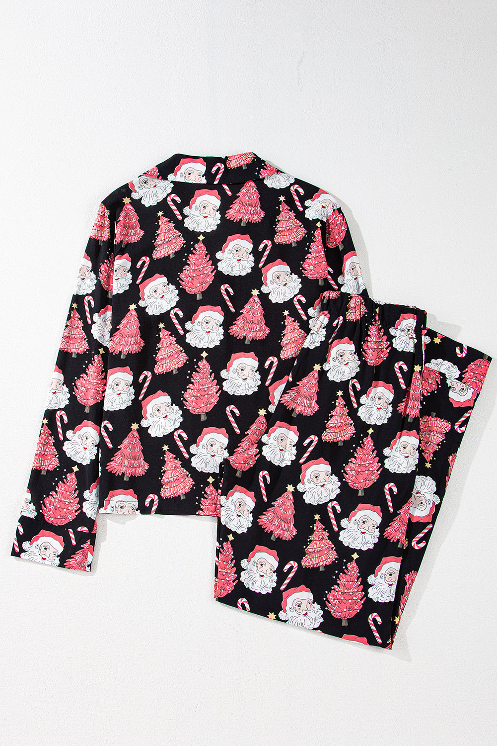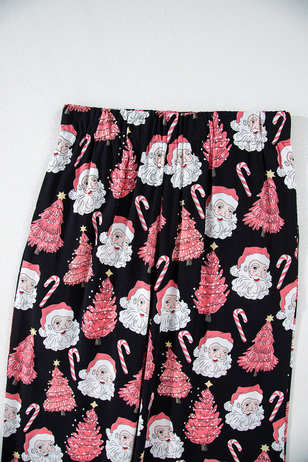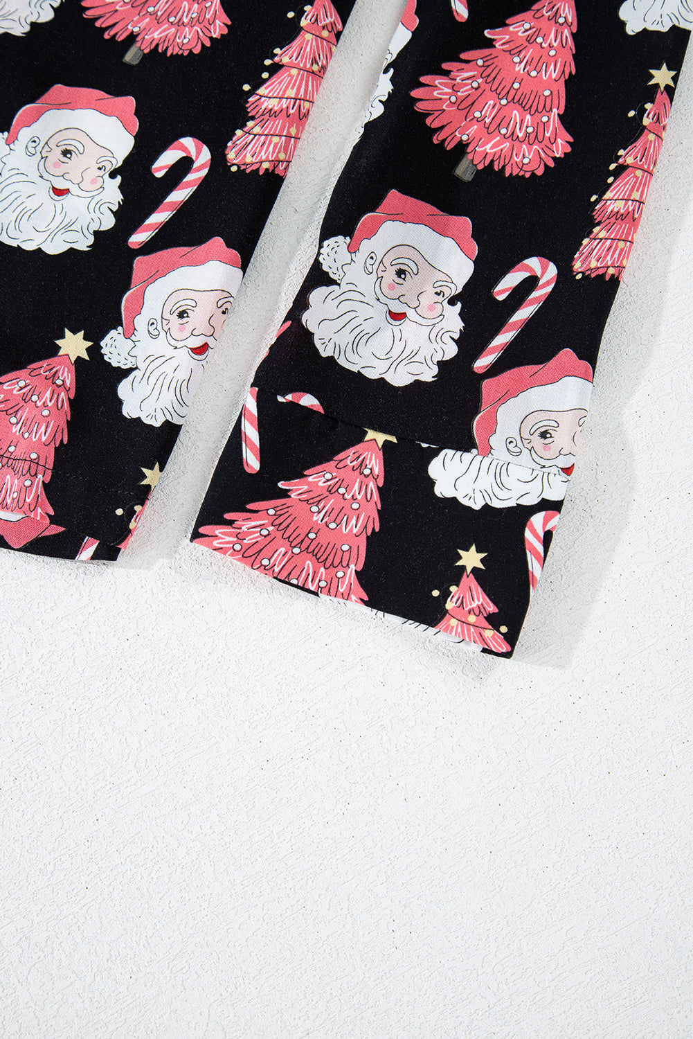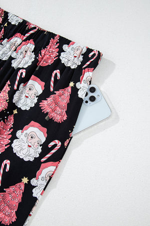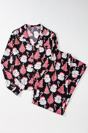 Black Christmas Santa Printed Two Piece Pajamas Set