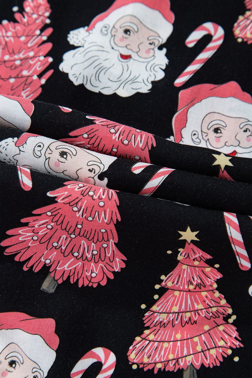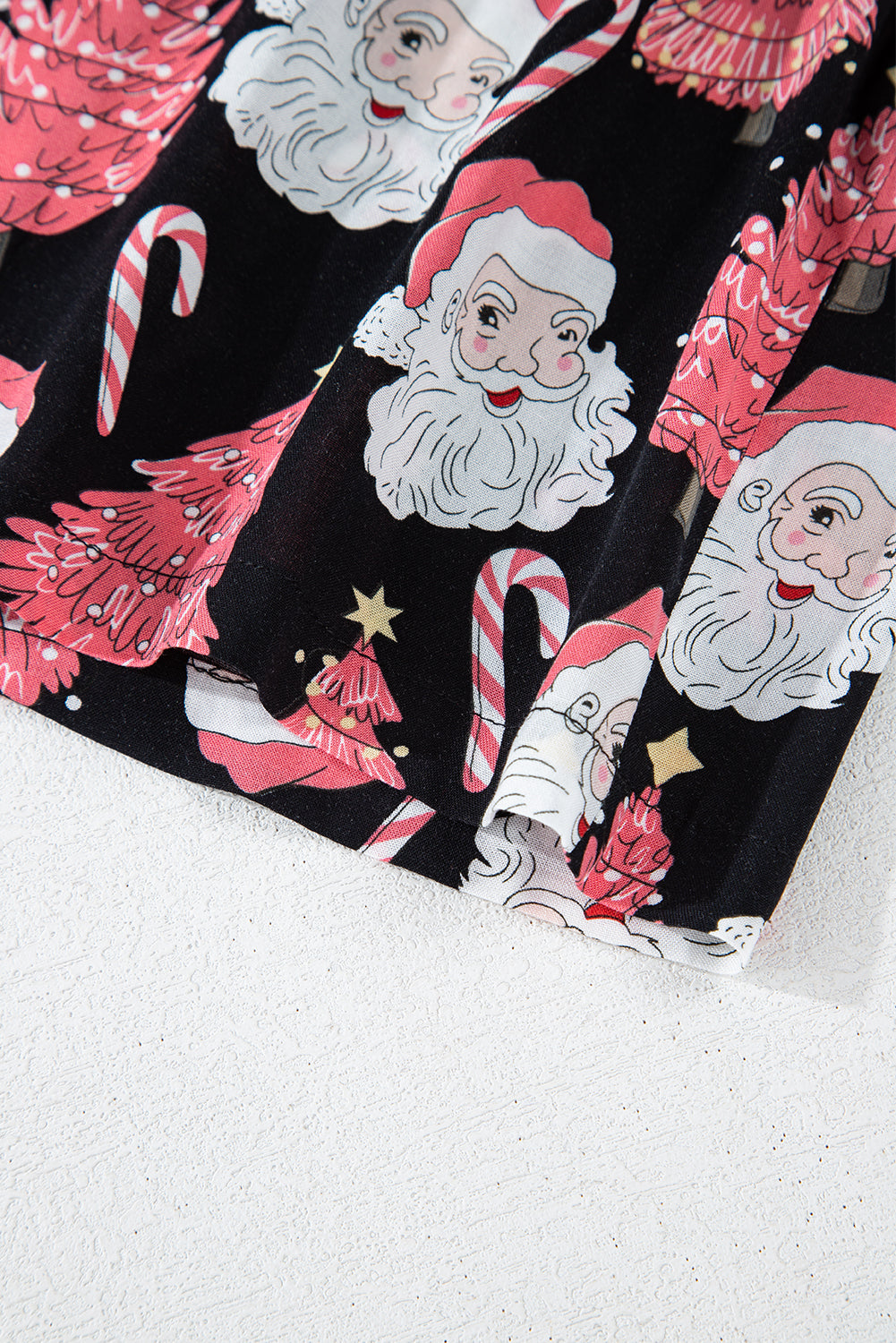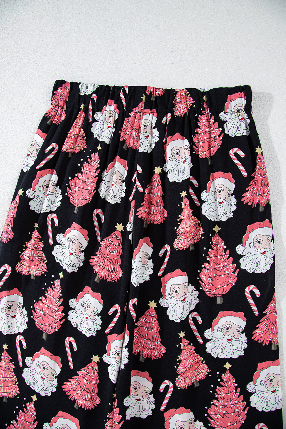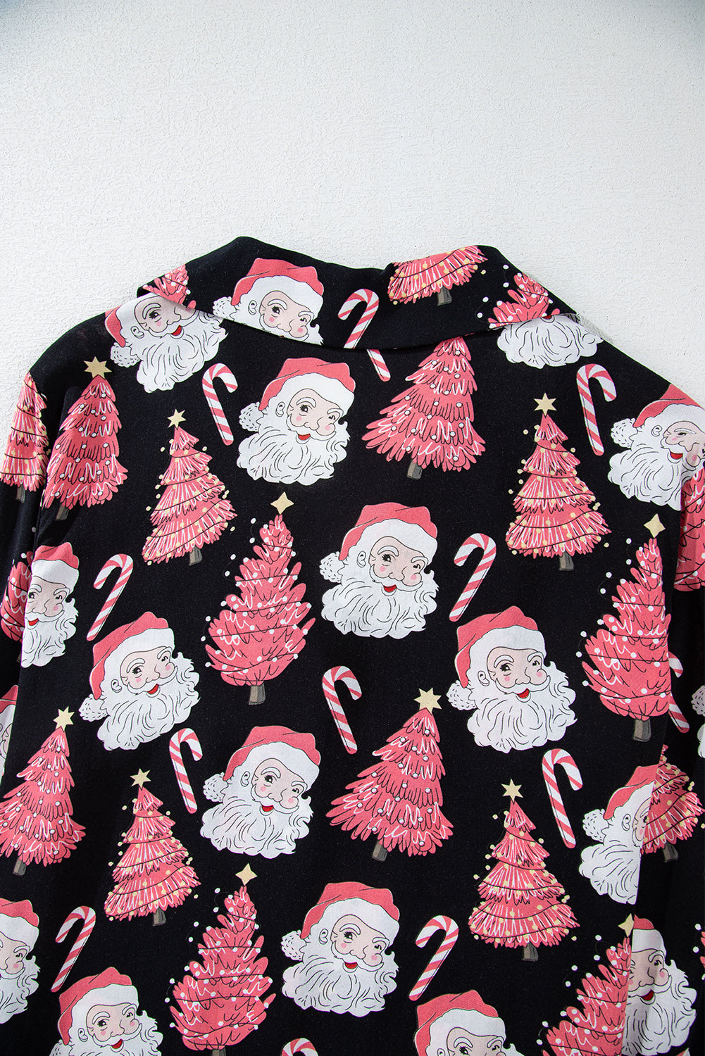 Black Christmas Santa Printed Two Piece Pajamas Set
