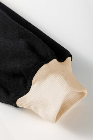 Black Color Contrast Loose Pullover and Lace-up Waist Skort Set