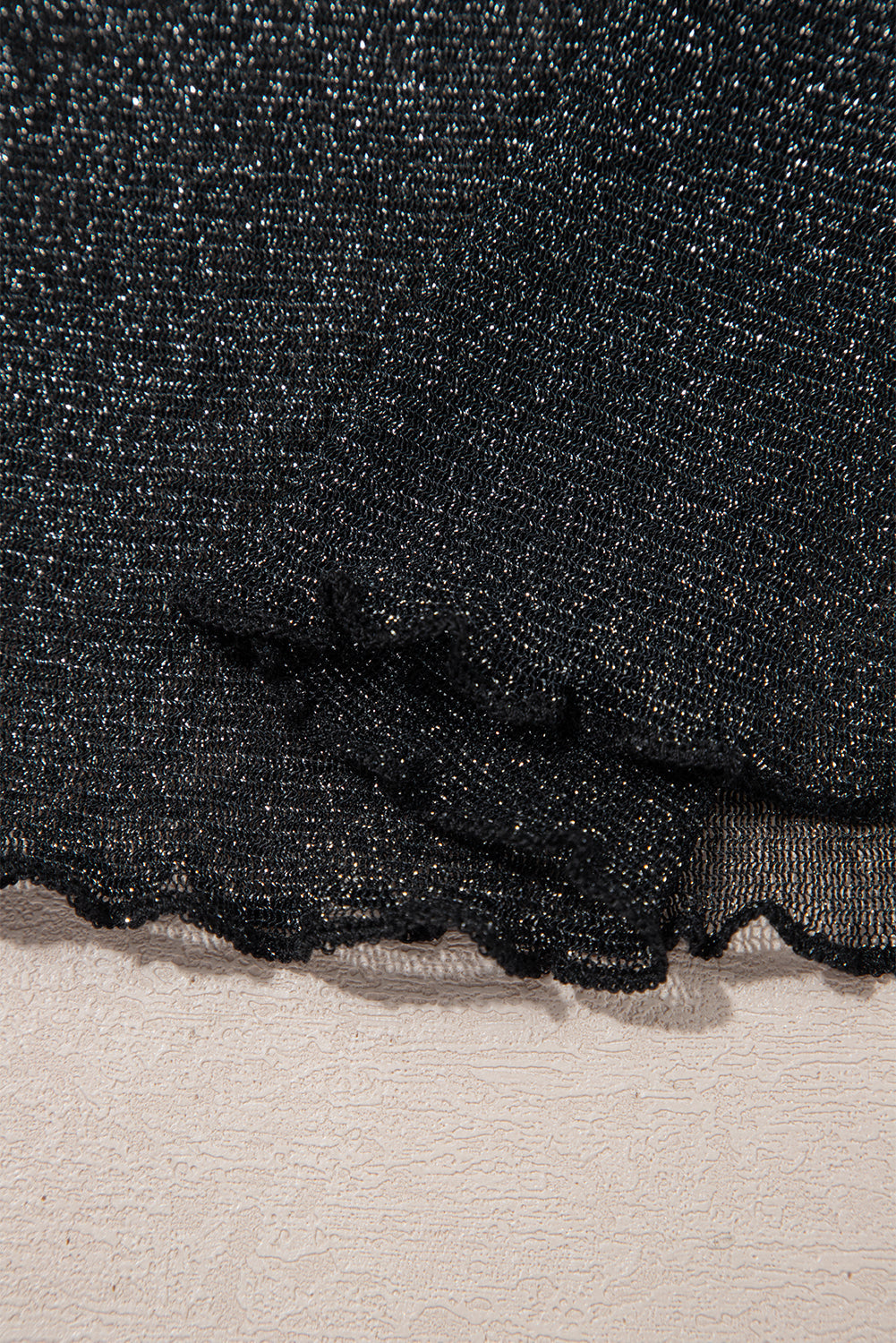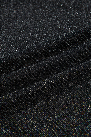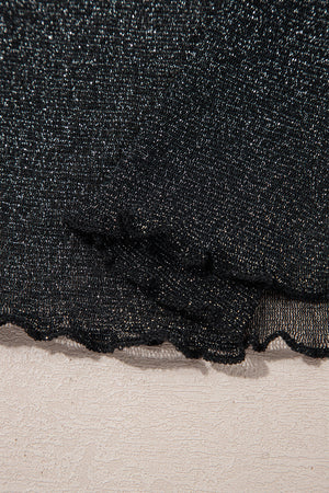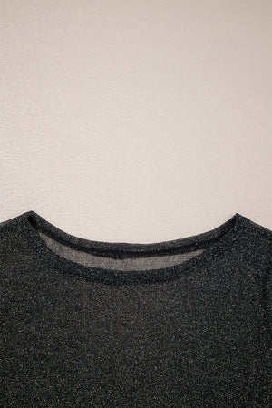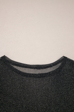 Black Metallic Glitter Mesh Long Sleeve Top