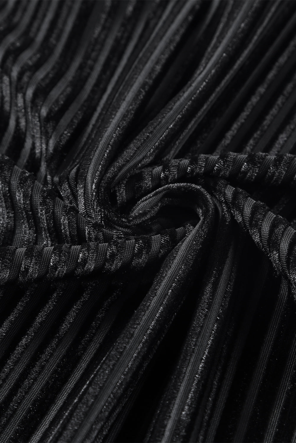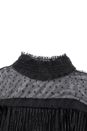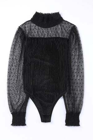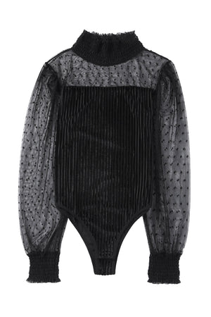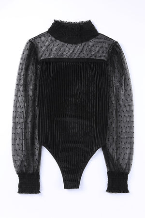 Black Sheer Dotty Long Sleeve Ribbed Velvet Bodysuit