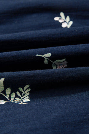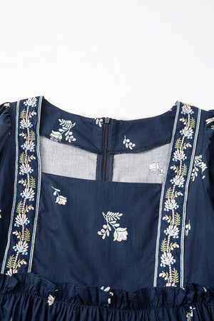 Blue Floral Embroidered Square Neck Puff Sleeve Ruffled Mini Dress