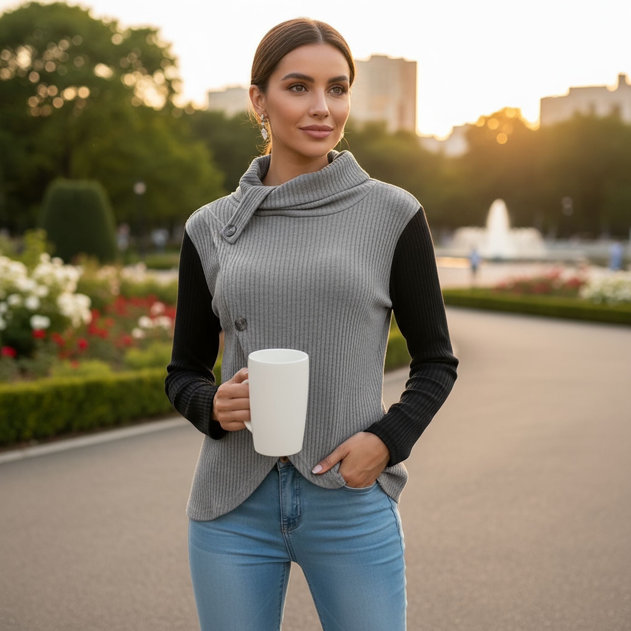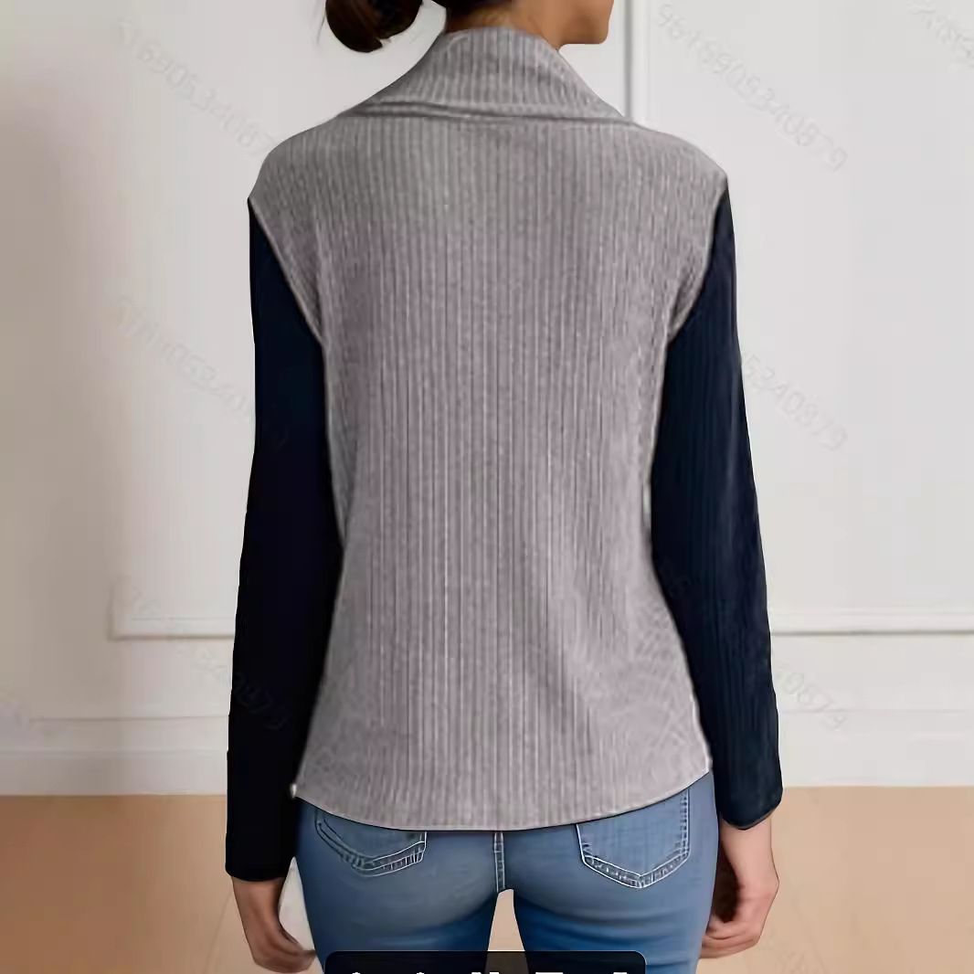 Bottom Pile Collar Top Long Sleeve Irregular Knit Pullover Women'S