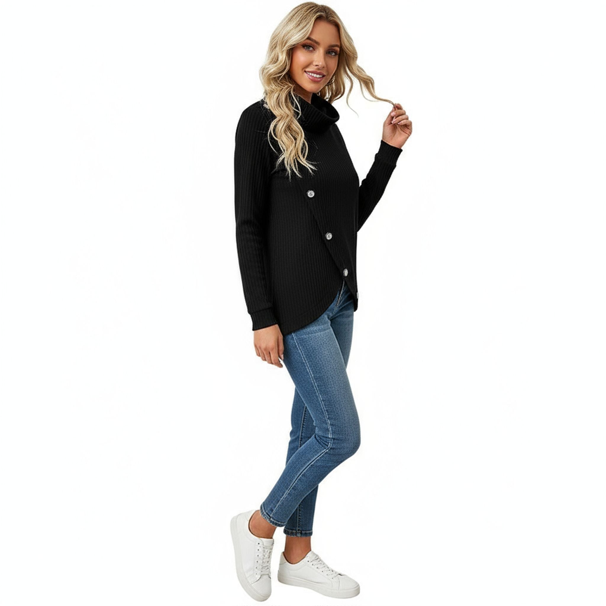 Home Bottom Pile Collar Top Long-Sleeved Irregular Knitted Pullover
