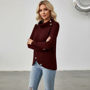 Home Bottom Pile Collar Top Long-Sleeved Irregular Knitted Pullover