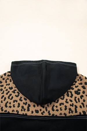 Brown Leopard Patchwork Contrast Stitching Knotted Cuff Quarter Zip Hoodie
