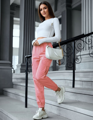 Casual Cargo Pants, Multi-Pocket Small Leg Pants, Women