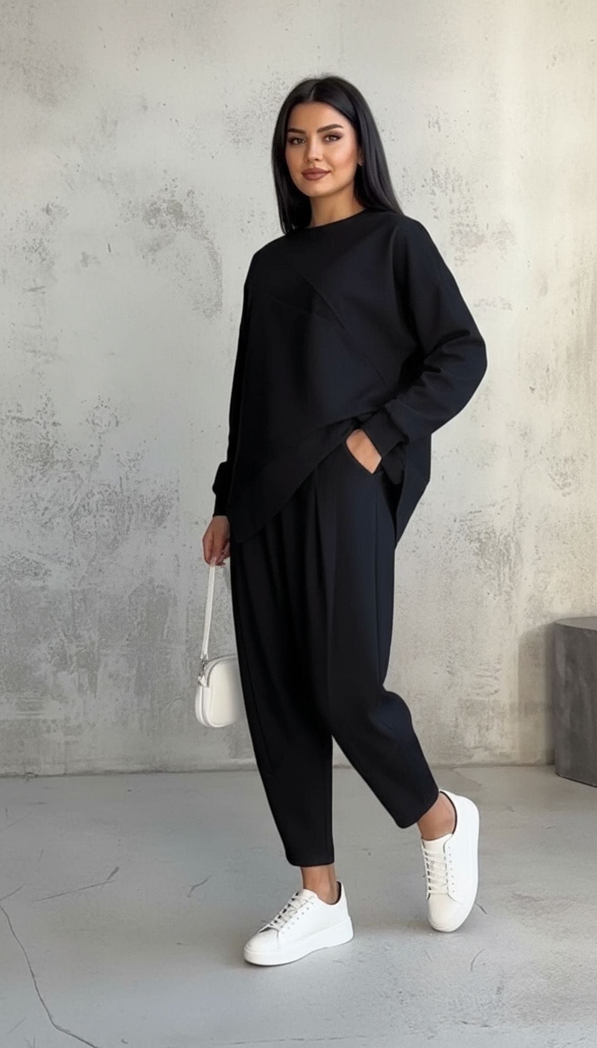 Casual Crew Neck Loose Irregular Long-Sleeved Sweatshirt Set