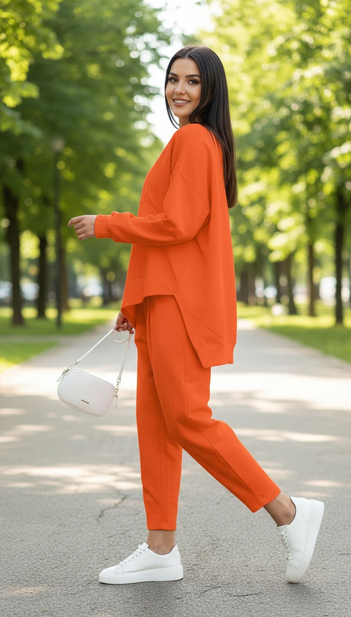 Casual Crew Neck Loose Irregular Long-Sleeved Sweatshirt Set