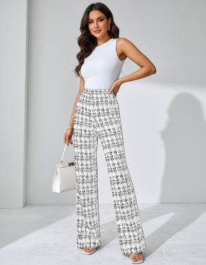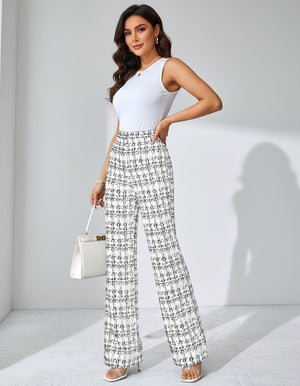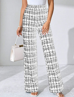 Casual Plaid Printed Pants Black Green