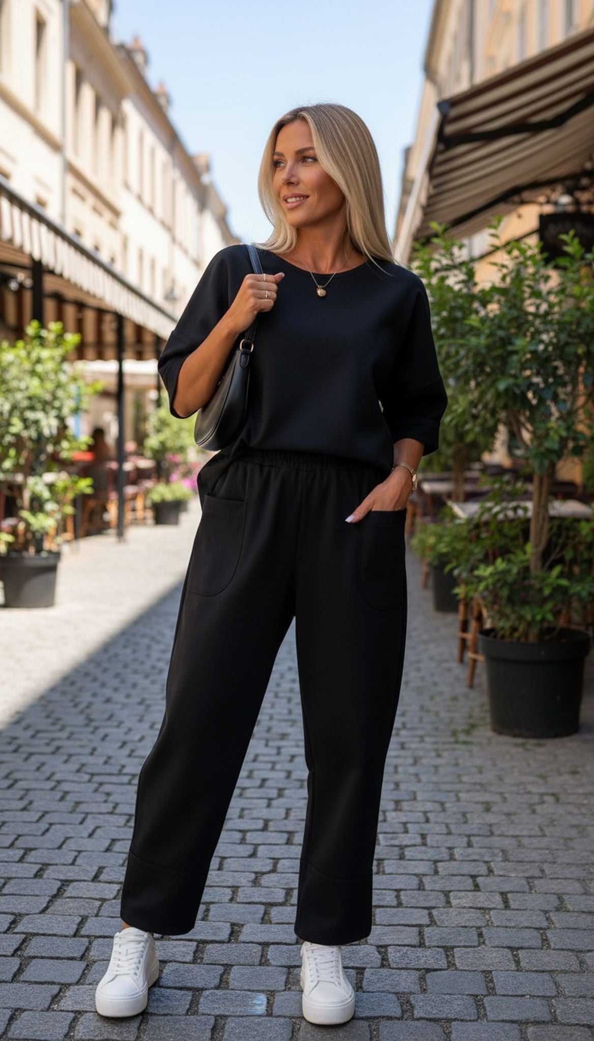 Crew Neck Long Sleeve Suit Pocket Pants Women'S