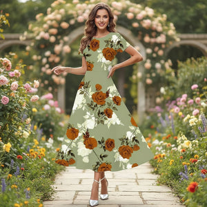 Home Cross-Border Spring And Summer New Digital Printed Crew Neck Dress