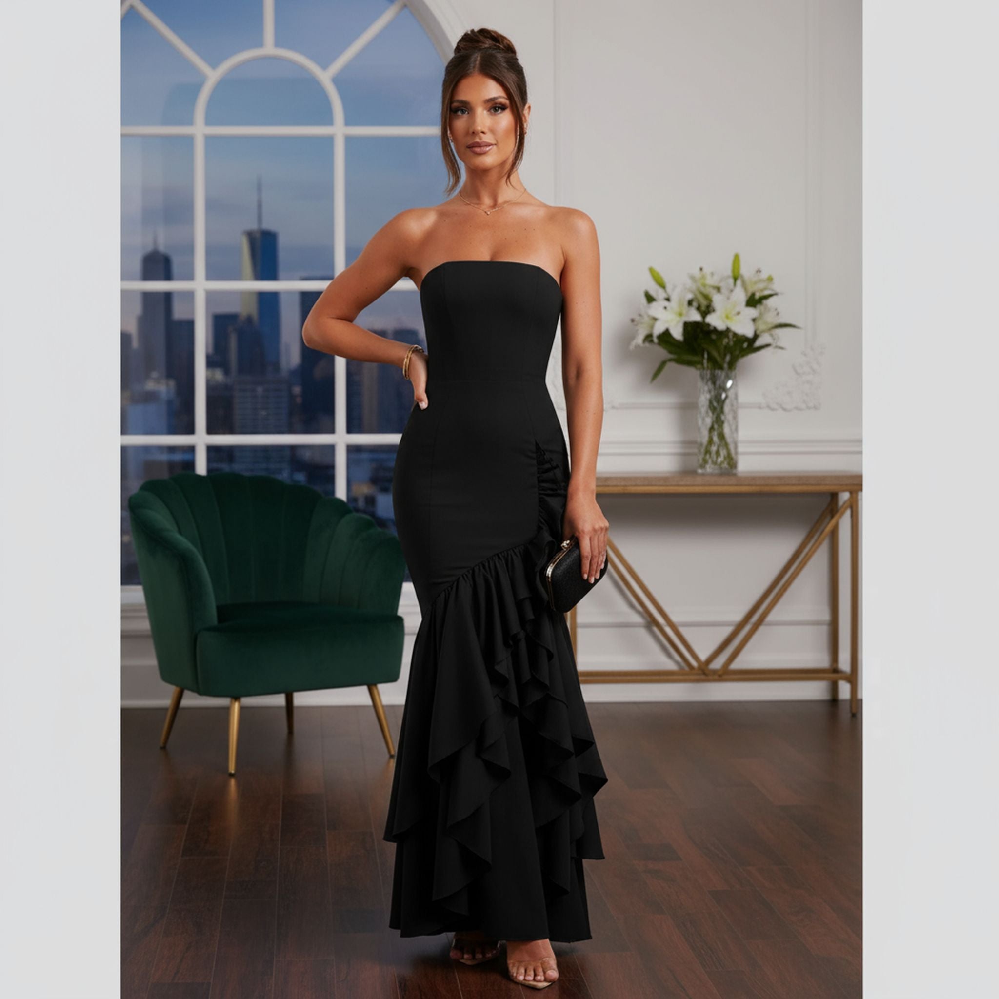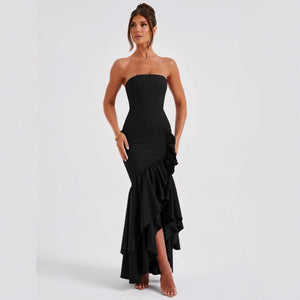 Elegant Bandeau Slit Fashion Slim Body Open Hip Dress