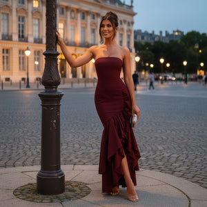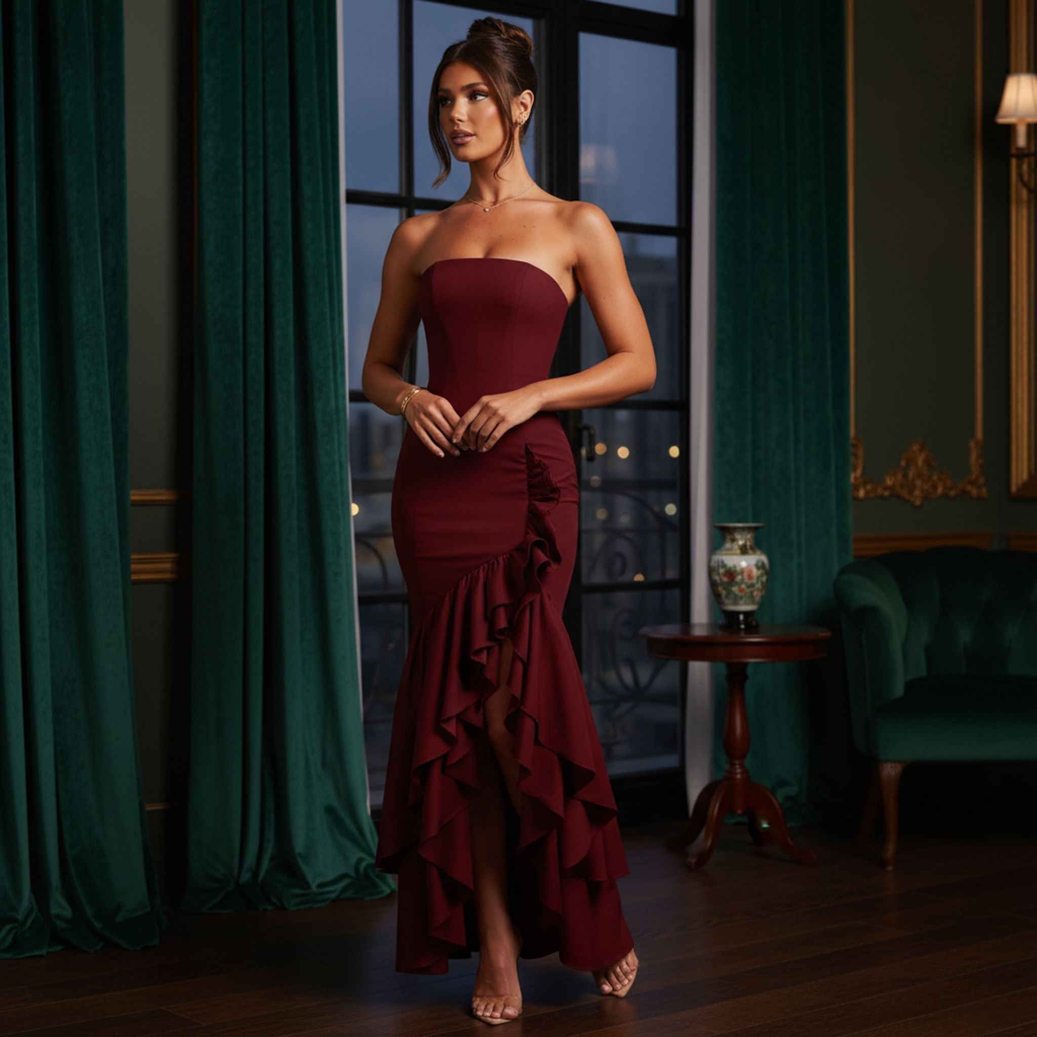 Elegant Bandeau Slit Fashion Slim Body Open Hip Dress