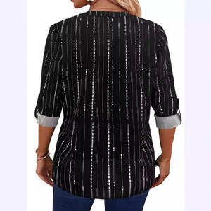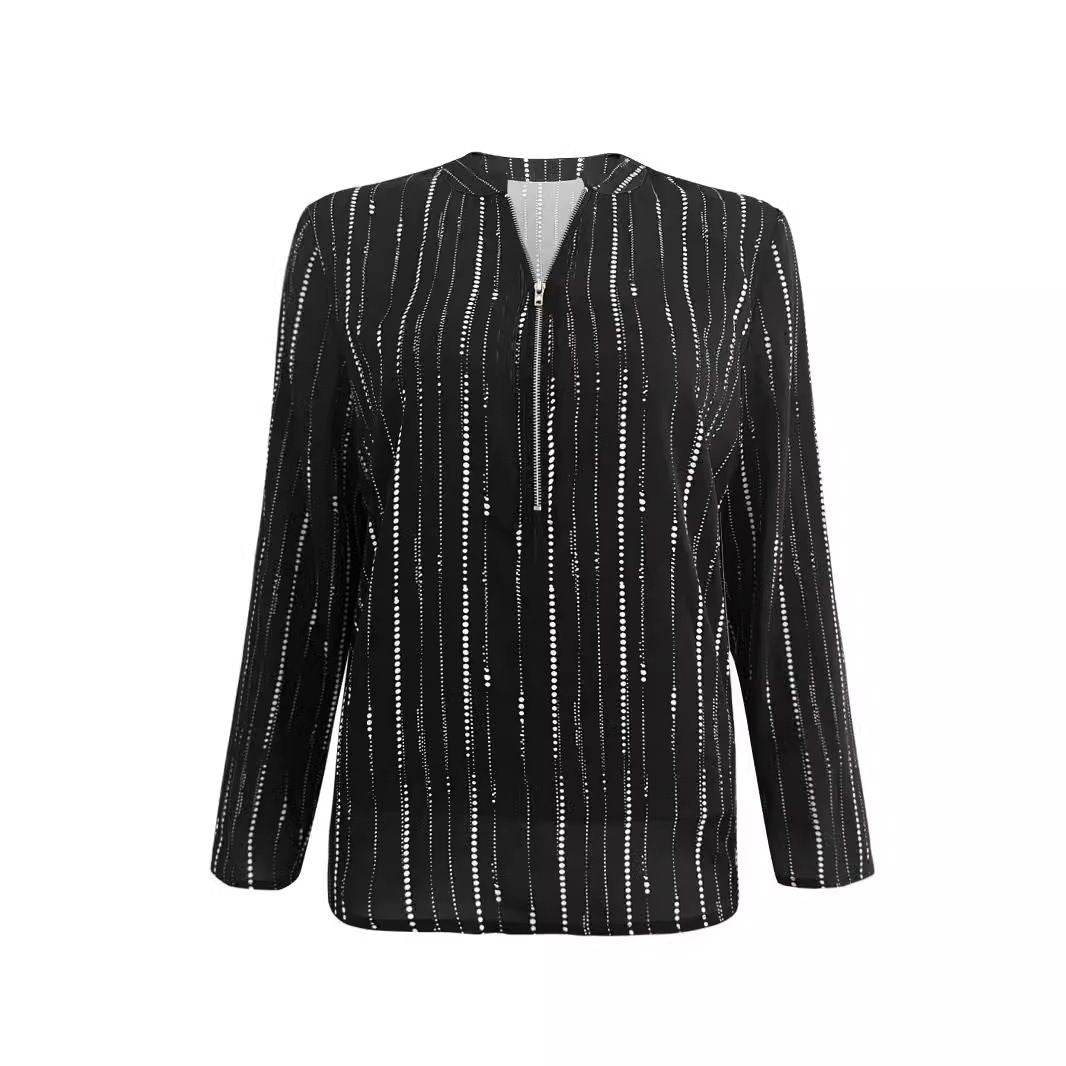 Elegant Striped Zipper Long Sleeve Shirt Top Women