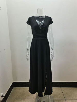 High Waist Slit Club Party Evening Dress Solid Color Dress