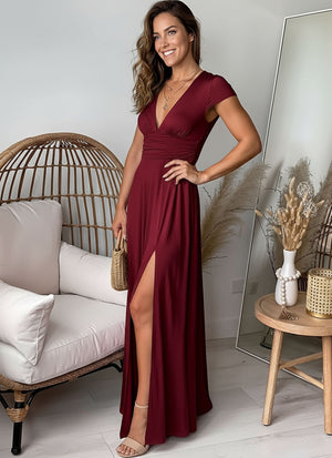 High Waist Slit Club Party Evening Dress Solid Color Dress