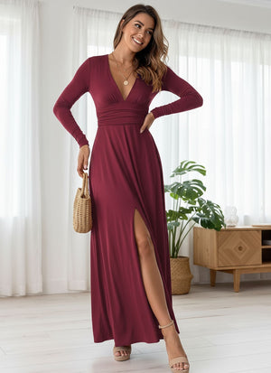 High-Waisted Slit Club Party Evening Dress Solid Color Dress