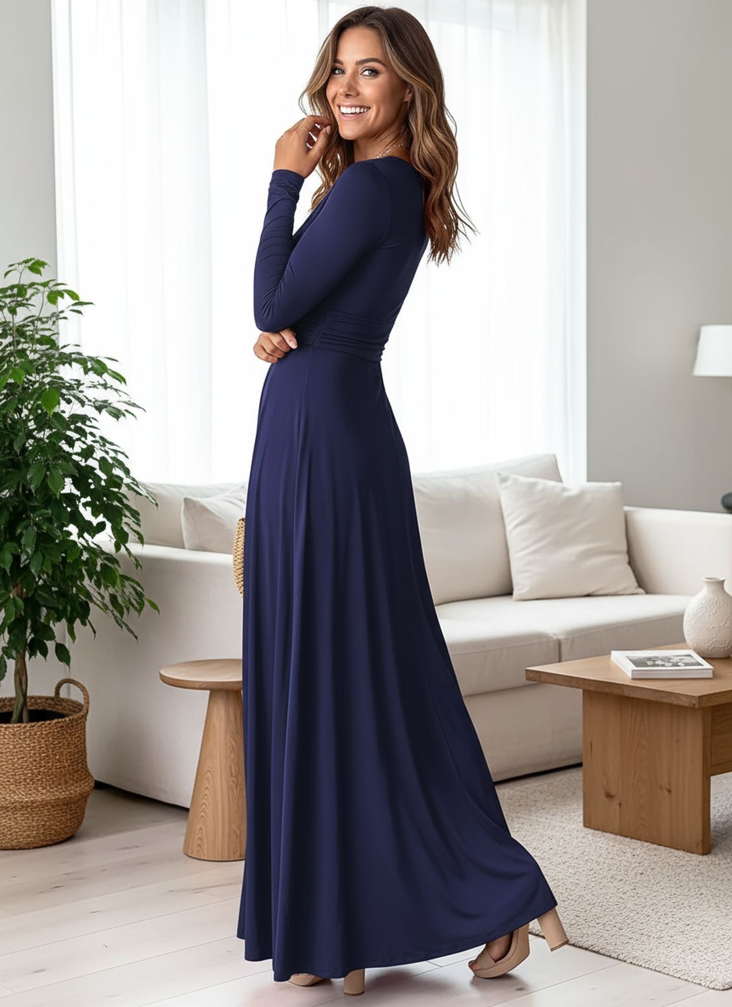 High-Waisted Slit Club Party Evening Dress Solid Color Dress