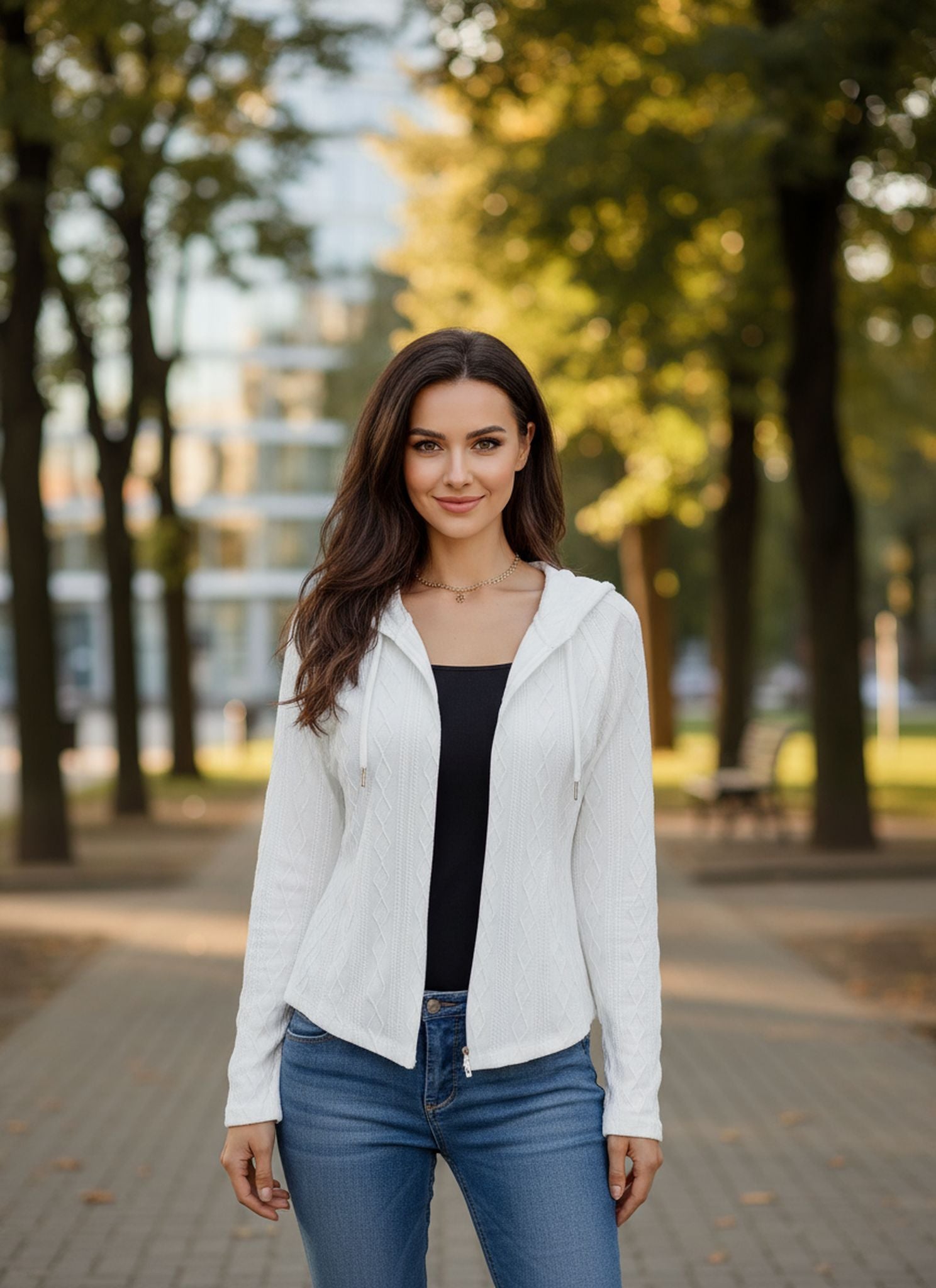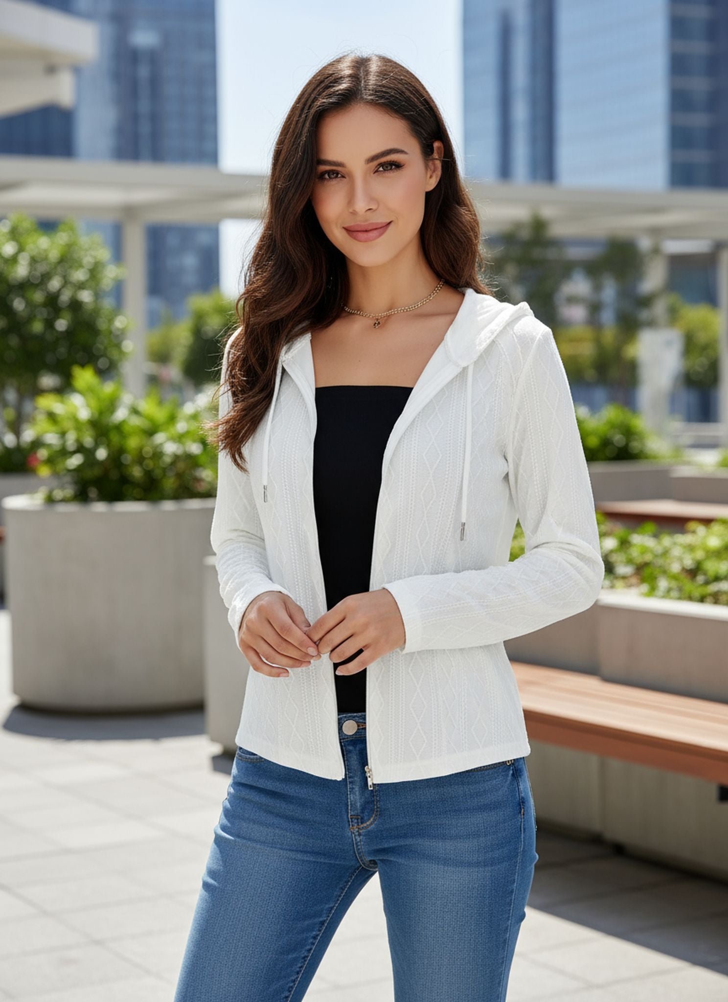 Hooded Zipper Drawstring Long Sleeve Sweatshirt Casual Zip Jacket Jacket