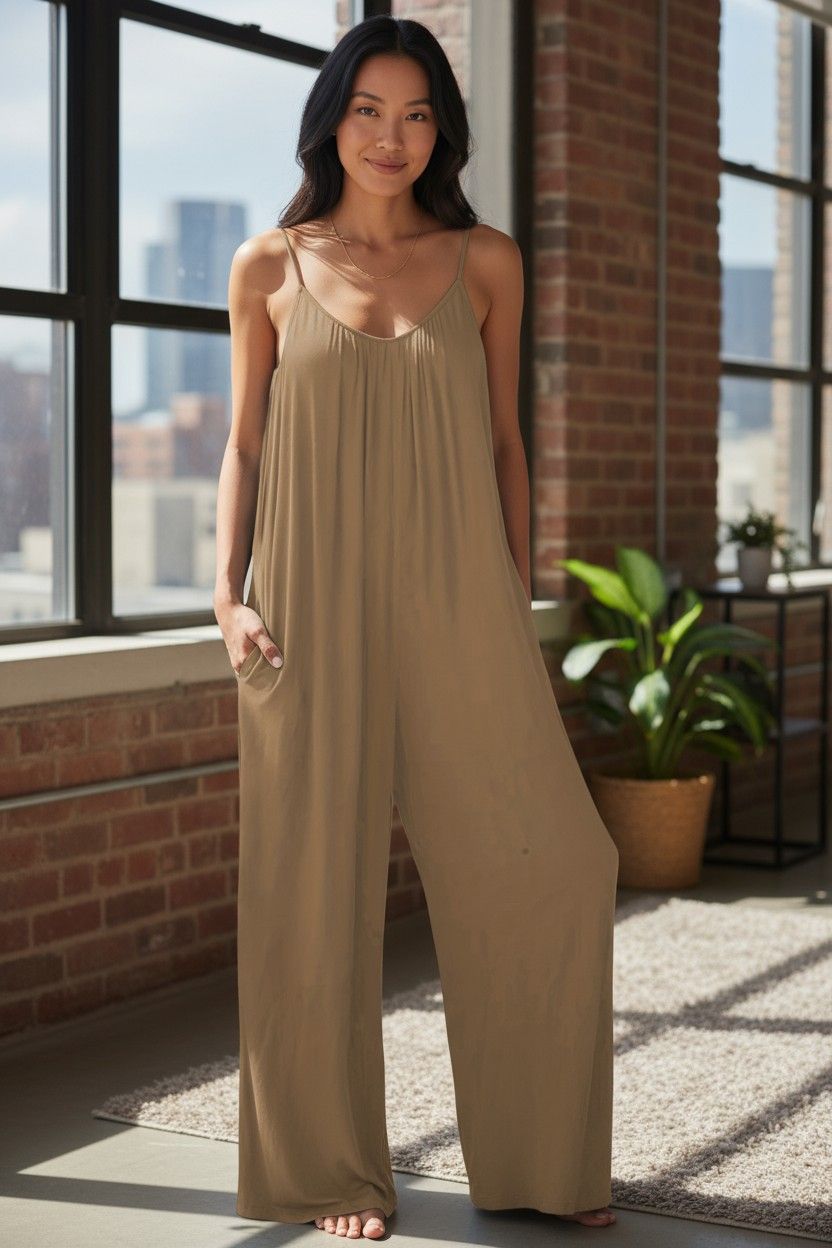 Hot Sale Casual Fashion Temperament Solid Color Suspender Jumpsuit For Women