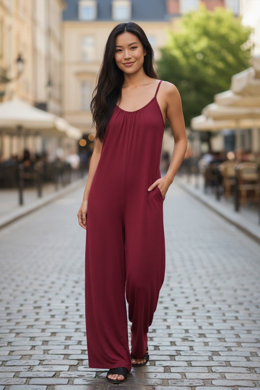 Hot Sale Casual Fashion Temperament Solid Color Suspender Jumpsuit For Women