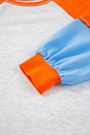 Light Grey Color Block Raglan Sleeve Contrast Stitching Loose Fit Top