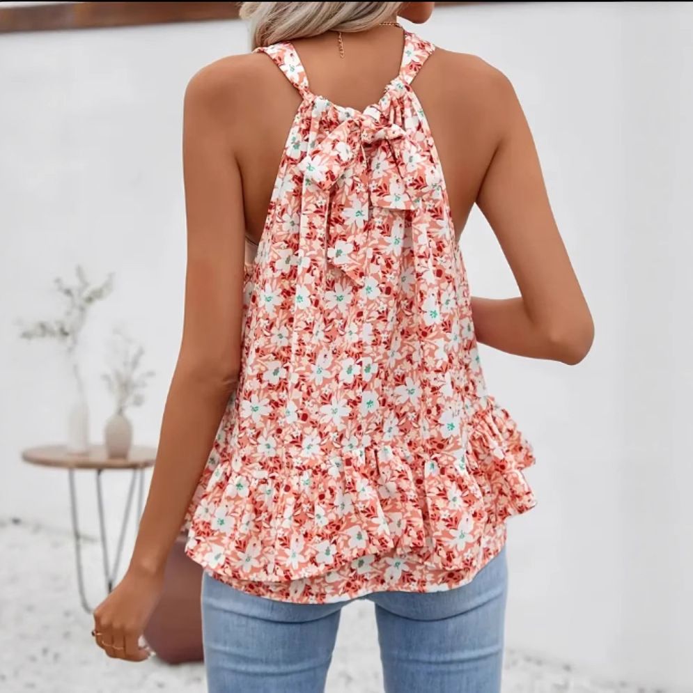 New Holiday Casual Print Sleeveless Off-The-Shoulder Camisole Top