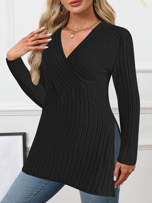 New Long-Sleeved Solid Color V-Neck Casual Home Pit Strip Top Thin