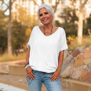 New Solid Color Loose Crew Neck Short-Sleeved Top T-Shirt