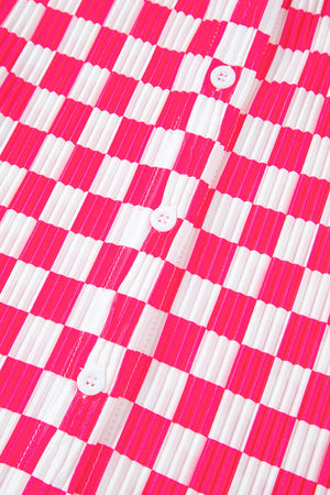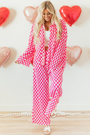 Pink Checkered Buttoned Shirt and High Waist Pants Pajama Set