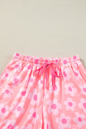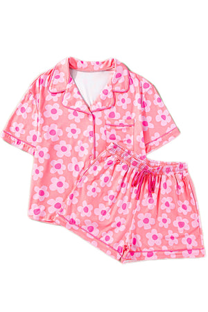 Pink Flower Print Short Sleeve Shirt Pajamas Set