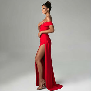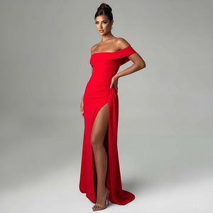 Sexy One-Shoulder Temperament Elegant Party Dress Slit Dress