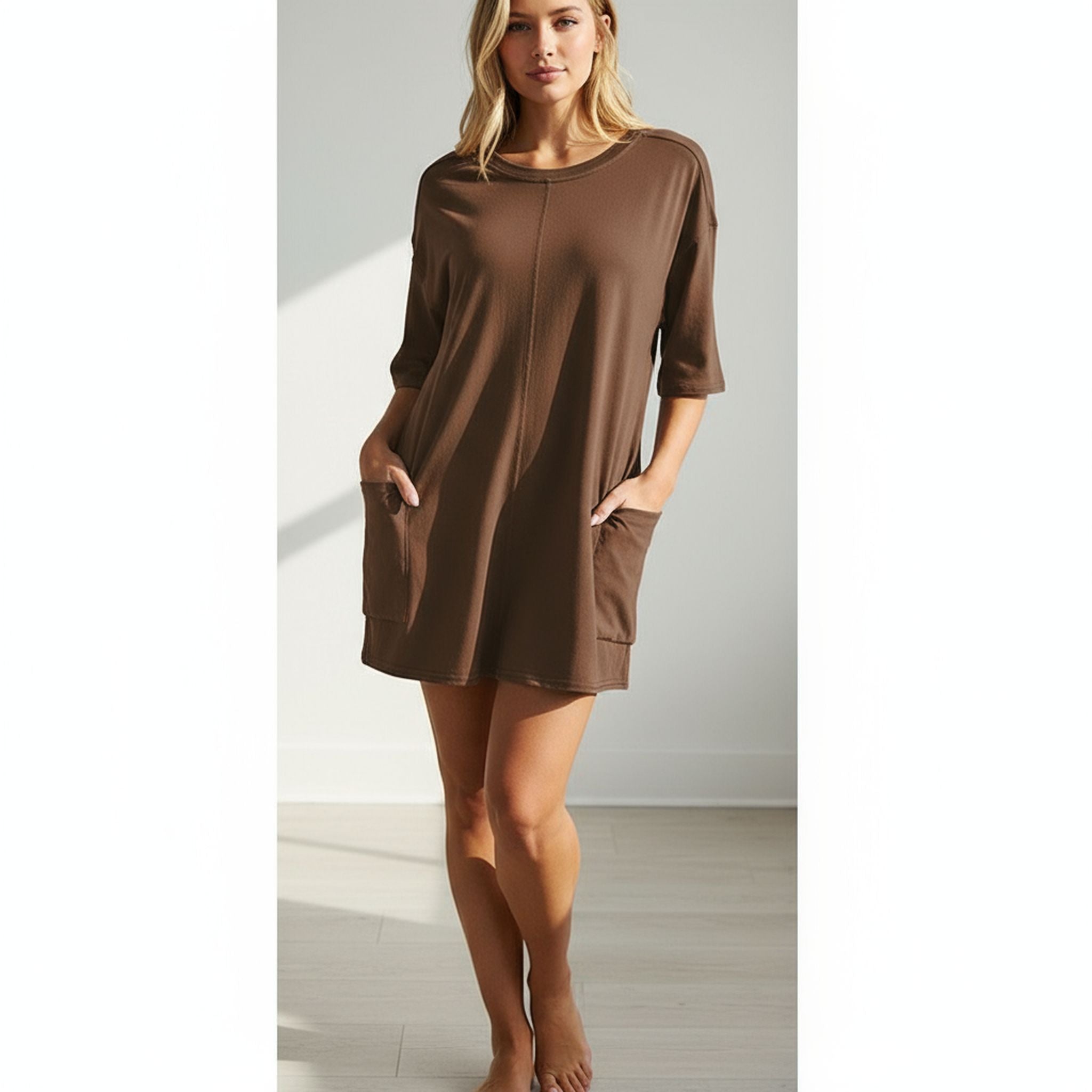 Home Short Sleeve Open Back V-Neck Loose Casual Pocket Jumpsuit