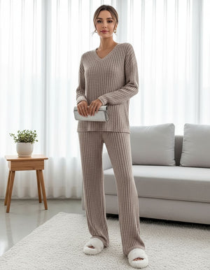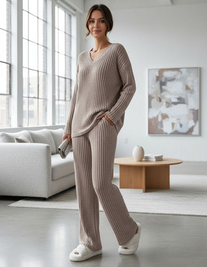 Home Suit Autumn New Fashion Casual Straight-Leg Pants Temperament Loose V-Neck