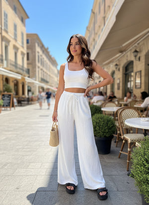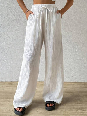 Versatile Elasticated Casual Solid Color Trousers Wide-Leg Pants
